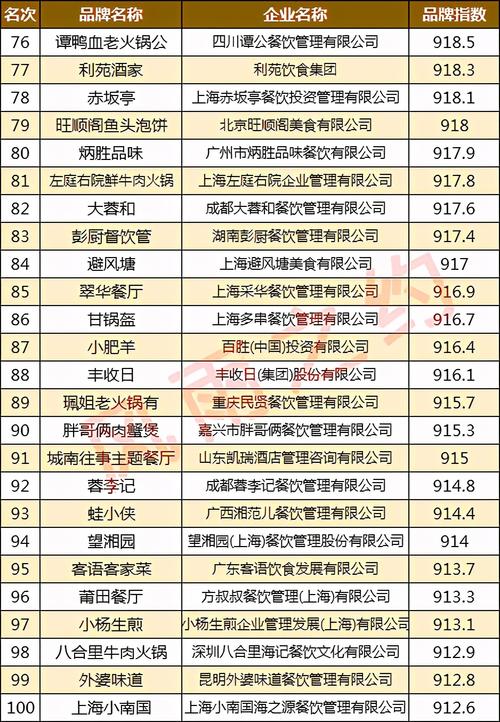 随着人民生活水平的提高和社会经济的发展,餐饮行业成为了人们生活中不可或缺的一部分。中国餐饮市场正在不断扩大,各类餐饮企业也在迅速崛起。其中,中国餐饮百强企业是业内的佼佼者,其营业额以及排名成为行业内关注的焦点。本文将针对中国餐饮百强企业营业额排名趋势及其影响因素进行分析探讨。