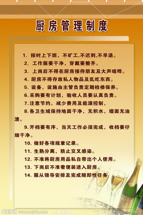 - 遵守厨房卫生规范,包括洗手、穿戴清洁工作服等。