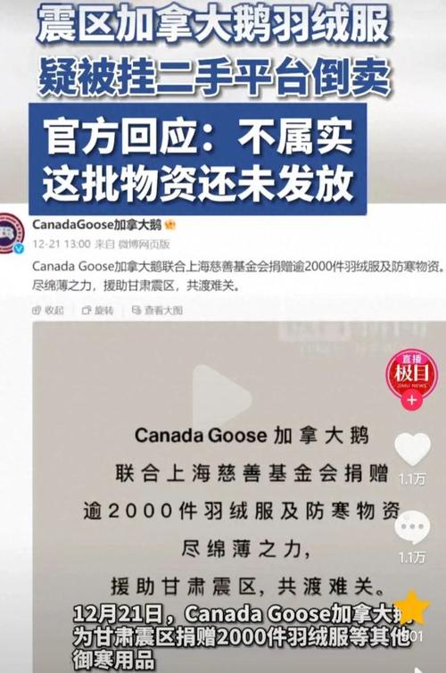 二手平台居然有人在倒卖赈灾的某知名羽绒服canada goose(加拿大鹅)